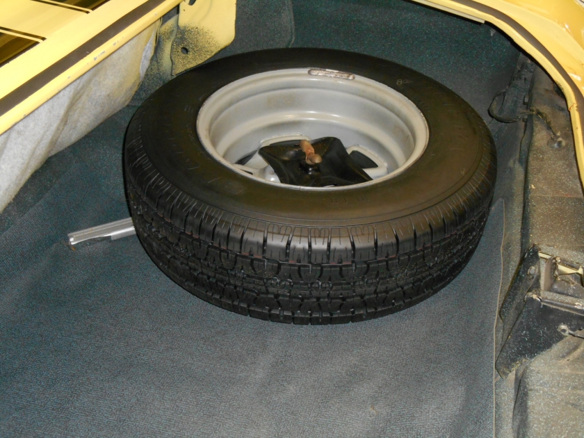 Exterior: Factory color code “51B” Cream yellow with Black SS stripes, Chevelle rides on factory correct 5 spoke SS wheels with newer BFG’s. the spare is also a factory SS wheel with new BFG. All the chrome and stainless looks very nice, all the glass is very nice, the paint is nice and there nothing that takes away from the car, very few flaws here, and it is better than driver quality and looks great and shines well